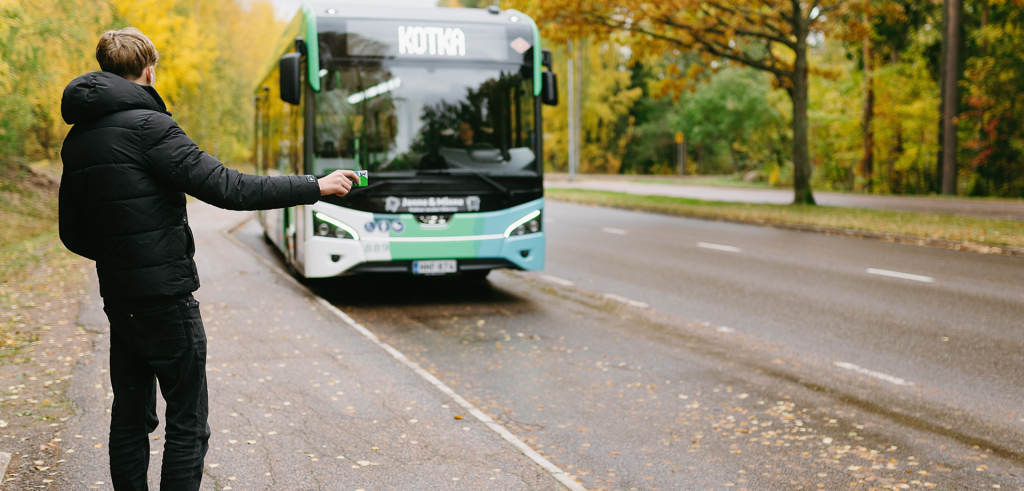 You can follow the real-time route of the busses in the Journey Planner at kotka.digitransit.fi.