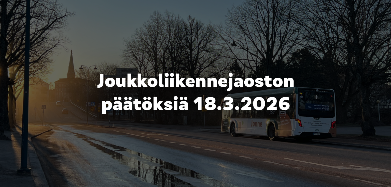 Kotkan seudun joukkoliikennejaosto teki 18.3.2026 pitämässään kokouksessa päätöksiä tulevien vuosien liikennepalveluista. Keskeisimpinä asioina olivat pienkalustoliikenteen kilpailutukset sekä kaupunkipyöräjärjestelmän hankinta. Kaikki asiat hyväksyttiin esitysten mukaisesti.